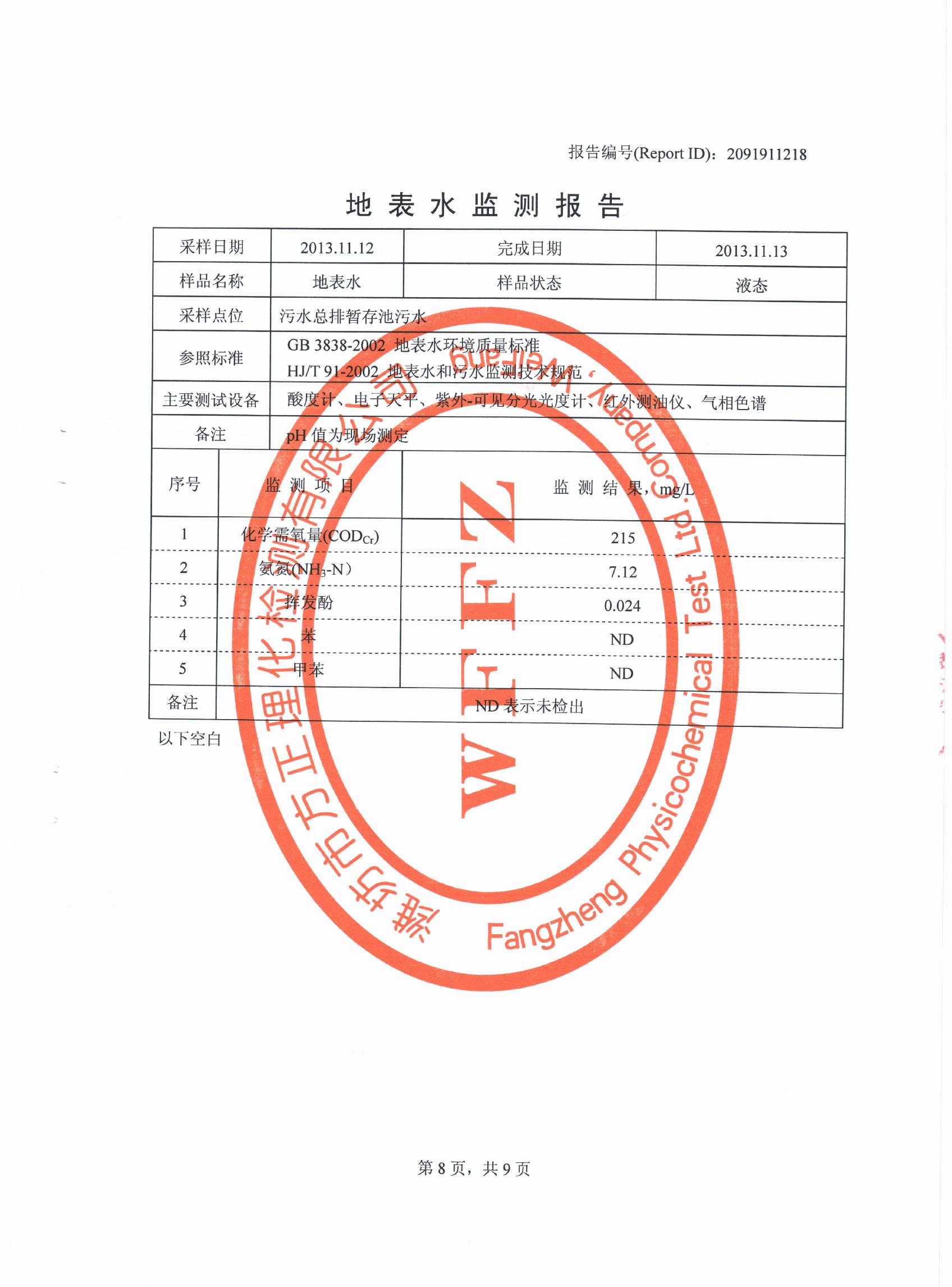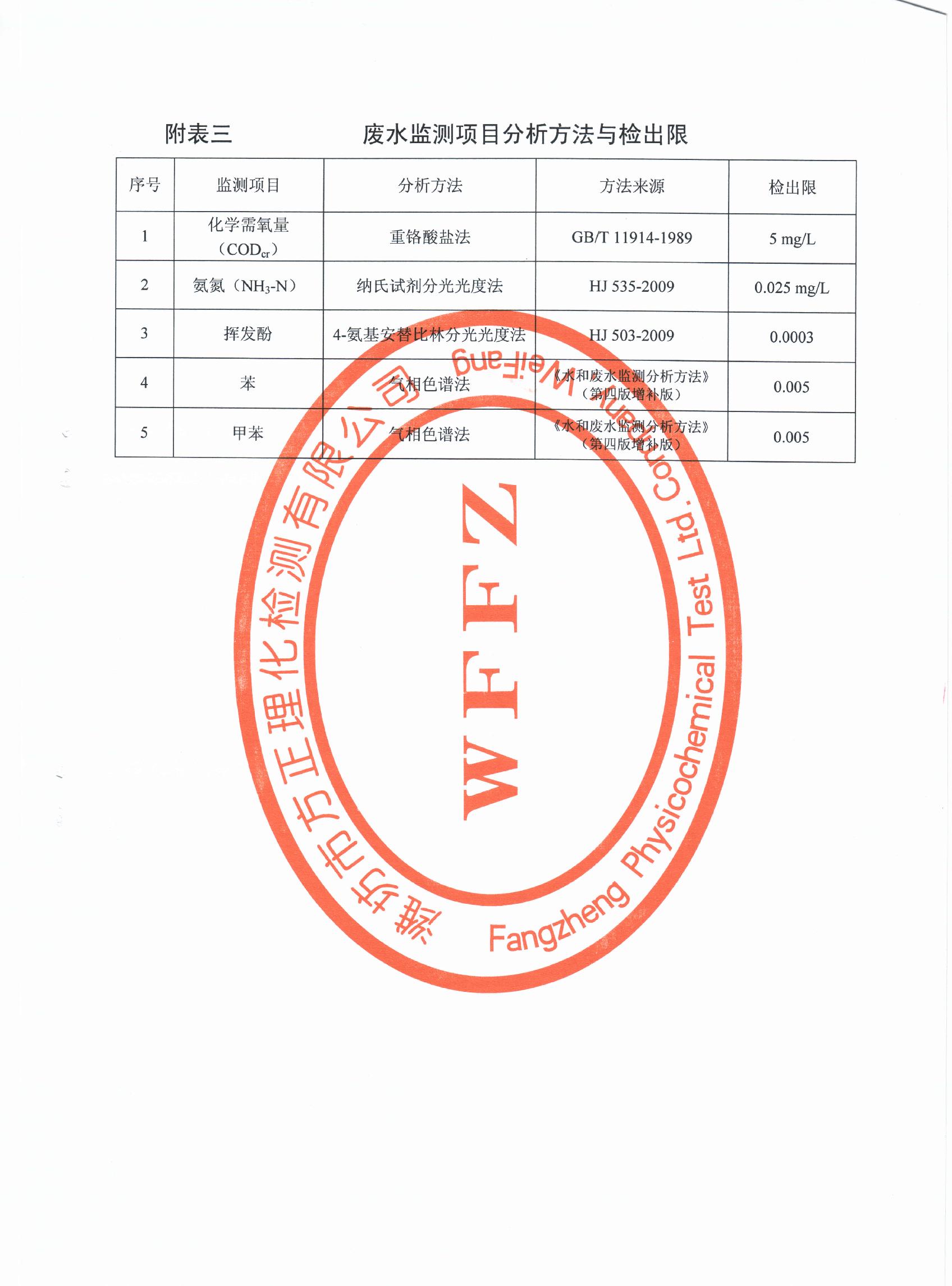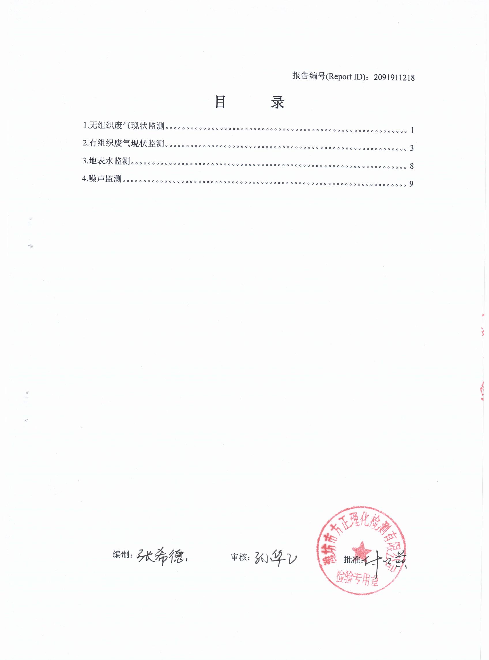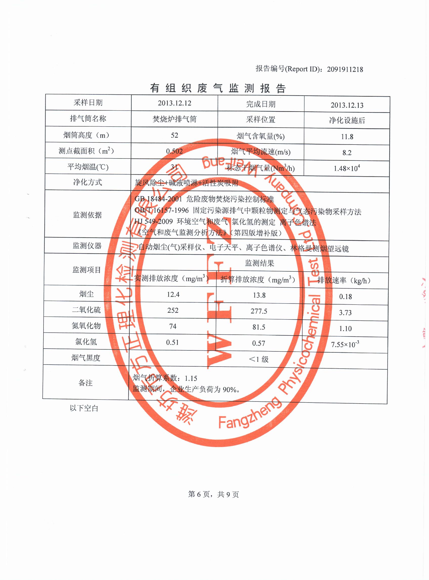 潍坊先达化工有限公司气体监测报告2013年第四季度