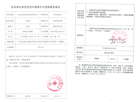 公司于2016年7月15日通过博兴县环境保护局备案,见备案证明。